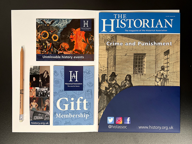 A personalised gift card with space for your own message- A welcome pack including an HA membership card, the latest edition of your chosen journal – The Historian, Teaching History or Primary History – and other goodies